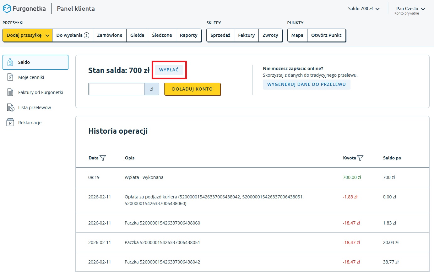 - Zaloguj się do Panelu klienta i przejdź do zakładki Saldo