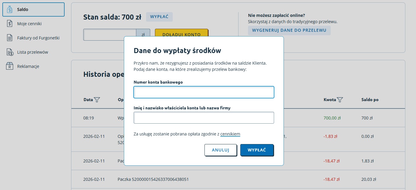 a. W pierwszej kolejności spróbujemy zwrócić Ci środki poprzez system pośrednika płatności – tą samą metodą płatności, którą zostały wpłacone. Jeśli taka forma zwrotu będzie możliwa, zobaczysz komunikat z prośbą o potwierdzenie wypłaty środków z salda.